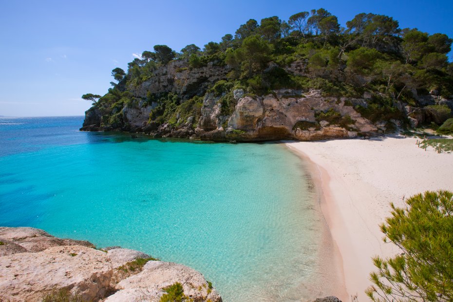 Macarella y su hermana pequeña, Macarelleta, son dos de las playas más conocidas de Menorca y de las más fotografiadas. Su gran atractivo, como otras muchas playas de la isla, es la arena blanca, las aguas turquesas y un bosque de pinos al fondo donde se puede descansar o refugiarse del sol. Macarella tiene un chiringuito de playa escondido entre los árboles por lo que es fácil comprar algún refresco e incluso sentarse en las mesas para comer. Macarelleta es una cala en la que se accede con barco o caminando desde Macarella. El paseo hasta este rincón de ensueño es fantástico, con unas vistas del mar Mediterráneo espectaculares y un entorno natural fantástico.